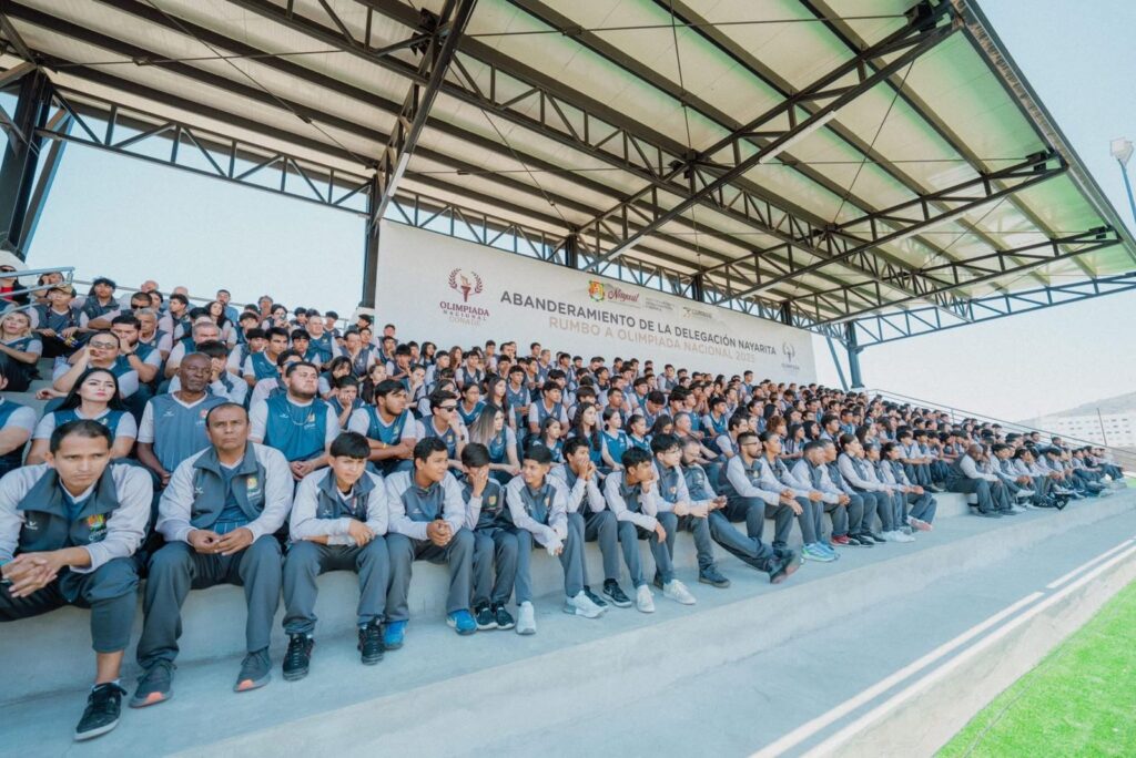 El gobernador del estado, Miguel Ángel Navarro Quintero encabezó en la Unidad Deportiva Nayarit el abanderamiento de la delegación que competirá en la Olimpiada Nacional CONADE 2025.