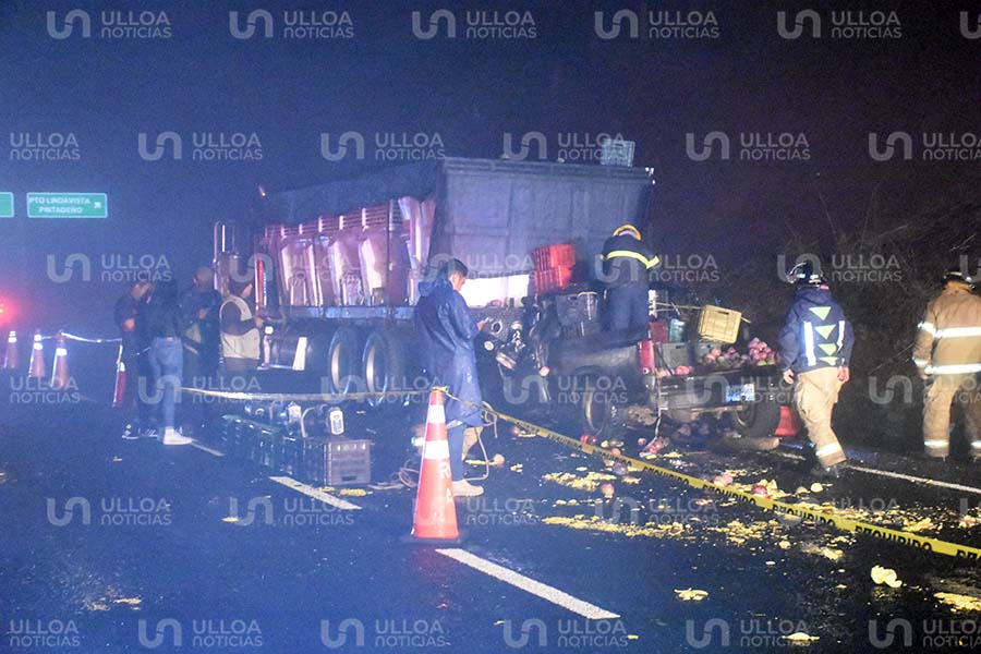 De acuerdo con testigos, el conductor de una camioneta tipo Pick Up viajaba en compañía de dos hombres con dirección a la capital nayarita cuando, presuntamente debido a las condiciones climáticas adversas —neblina y lluvia—, se impactó por alcance contra un camión tipo tinaja que transportaba mangos.
