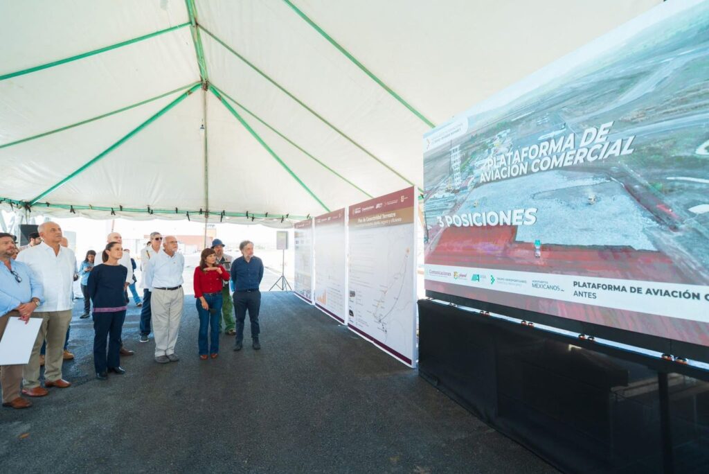 La presidenta de México, Claudia Sheinbaum Pardo, y el gobernador de Nayarit, Miguel Ángel Navarro Quintero, recorrieron el Aeropuerto Internacional Tepic-Riviera Nayarit, cuya ampliación presenta un avance del 70%.