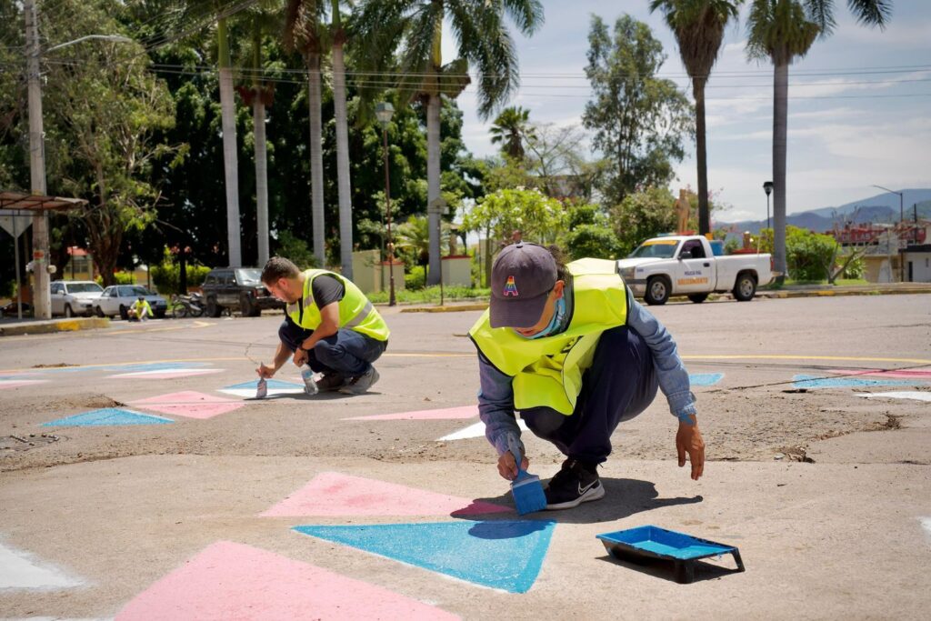 La intervención incluyó la aplicación de pintura, señalización vial y la instalación de mobiliario urbano, en una acción coordinada por el Instituto Municipal de Planeación (IMPLAN Tepic) y con el acompañamiento técnico de Silvina Razo, representante de la Estrategia Misión Cero.