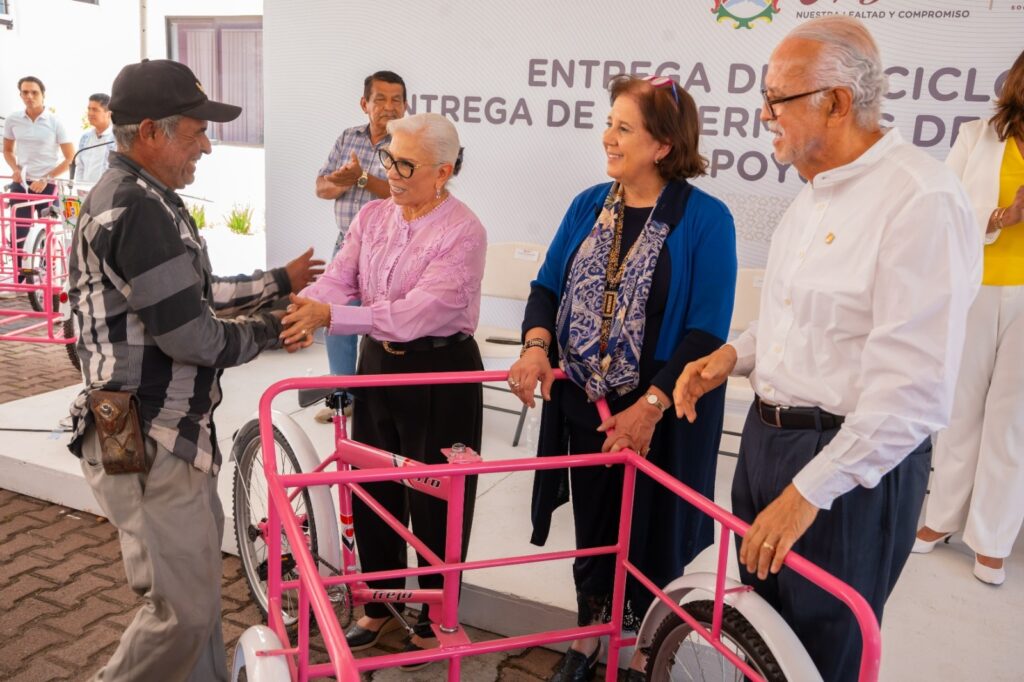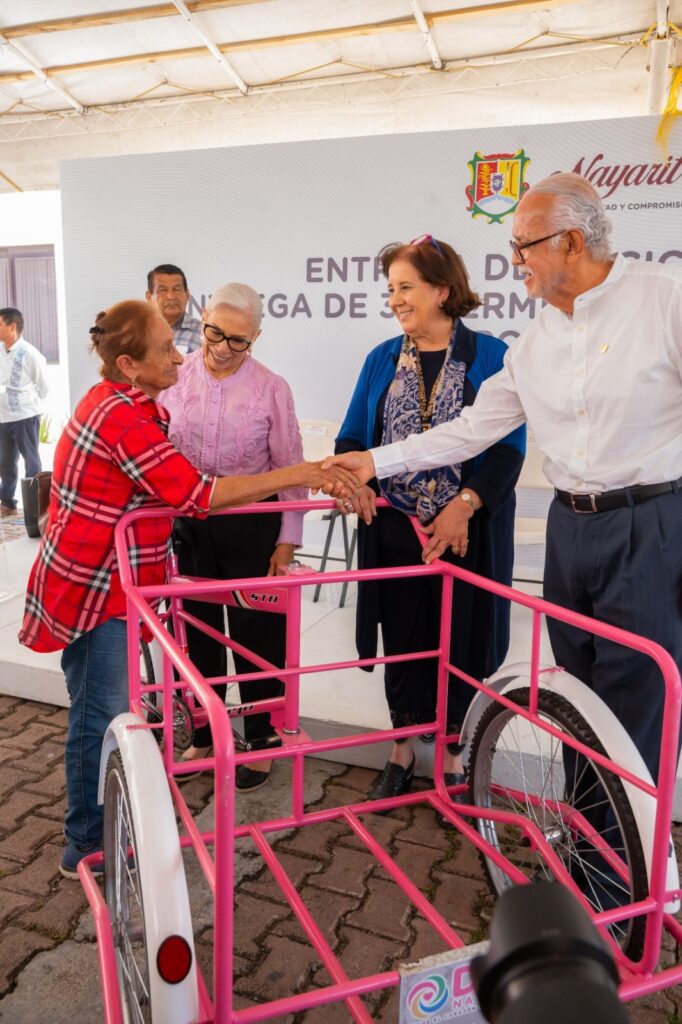 Como parte de su compromiso con el bienestar, la justicia social, y la prosperidad compartida, el gobernador del estado, Miguel Ángel Navarro Quintero, y su esposa, la presidenta del Sistema DIF Nayarit, doctora Beatriz Estrada Martínez, entregaron 50 triciclos de carga personas de bajos recursos de Tepic y 41 permisos de transporte público a quienes durante años han trabajado como choferes sin acceso a una concesión, además de apoyos económicos a ambos grupos de beneficiarios.