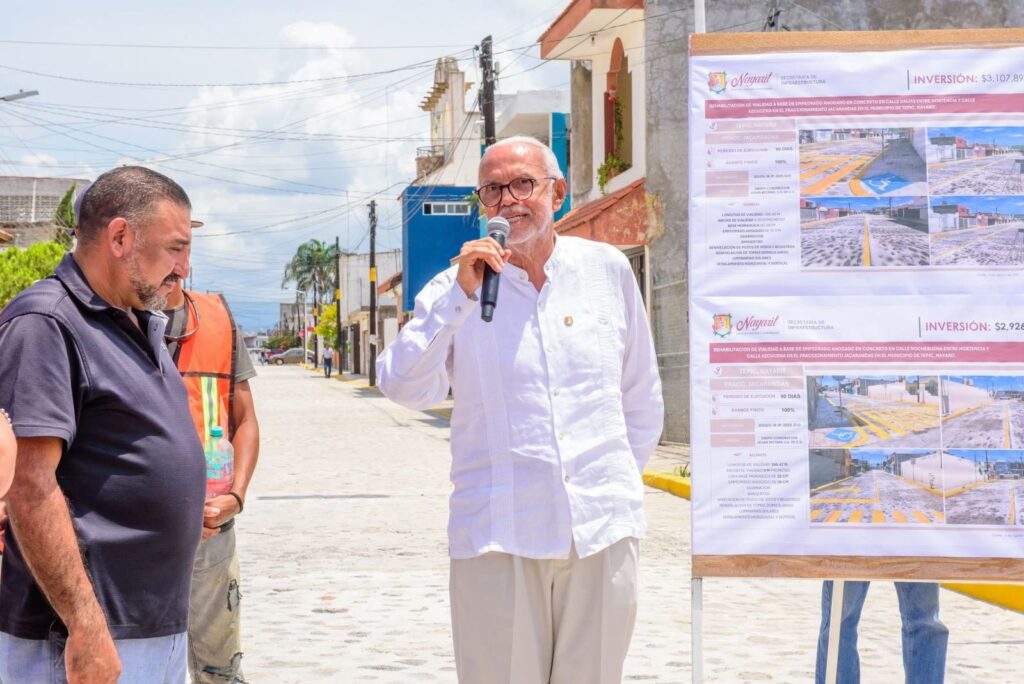 En el fraccionamiento Jacarandas de Tepic, el gobernador del estado de Nayarit, Miguel Ángel Navarro Quintero hizo entrega de la rehabilitación integral de las calles Dalias y Nochebuena, donde se aplicó empedrado ahogado en concreto.