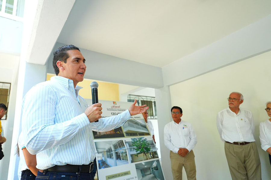 En la localidad de San Juan de Abajo, municipio de Bahía de Banderas, el gobernador del estado, Miguel Ángel Navarro Quintero, acompañado de su esposa, la presidenta del Sistema DIF Nayarit, doctora Beatriz Estrada Martínez, visitó las instalaciones del plantel educativo CECyTEN, que brinda atención a mil 500 estudiantes.
