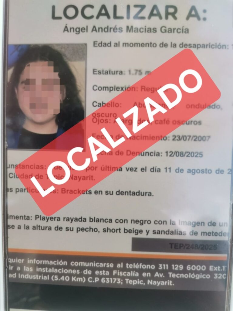 Los hechos se registraron en la zona centro de Tepic, donde los elementos de seguridad se entrevistaron con la ciudadana que realizó el reporte, identificada como madre del joven. La mujer informó que su hijo identificado como Ángel Andrés no había regresado a dormir la noche anterior, motivo por el cual presentó la denuncia correspondiente ante la autoridad competente.