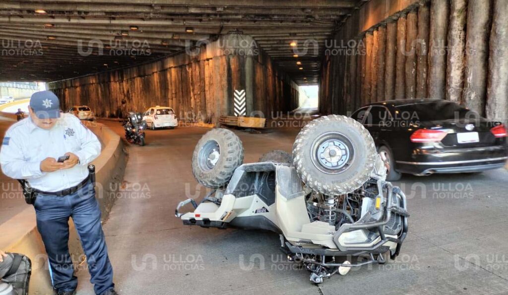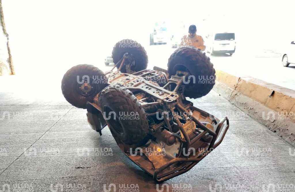 La cuatrimoto terminó volcada, con los neumáticos hacia arriba. Elementos de la Policía Vial del municipio acudieron al lugar para asegurar la zona y realizar el peritaje correspondiente.