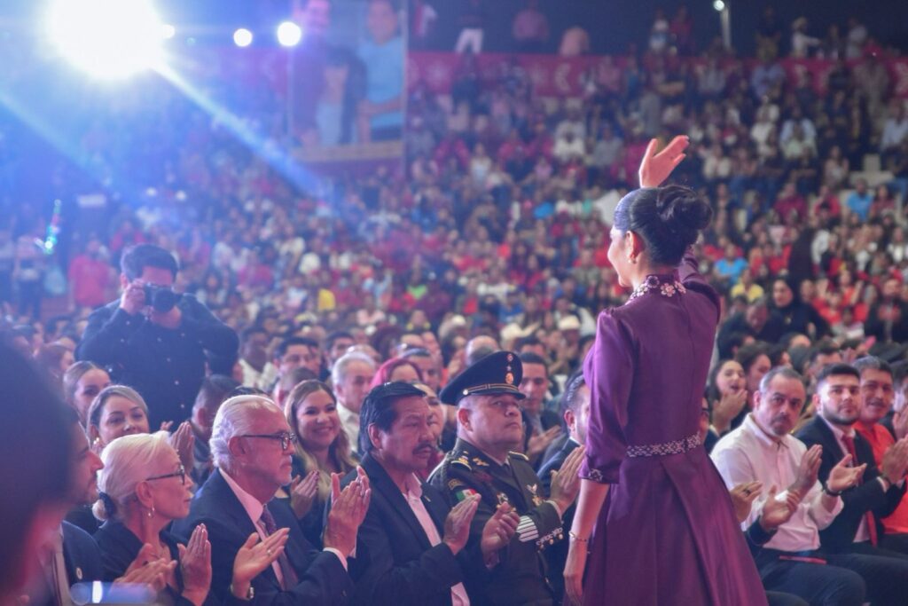 Tepic.- La presidenta municipal de Tepic, Ing. Geraldine Ponce, en un Metrodomo lleno con miles de familias, compartió los resultados de cuatro años de transformación y trabajo en la capital nayarita.