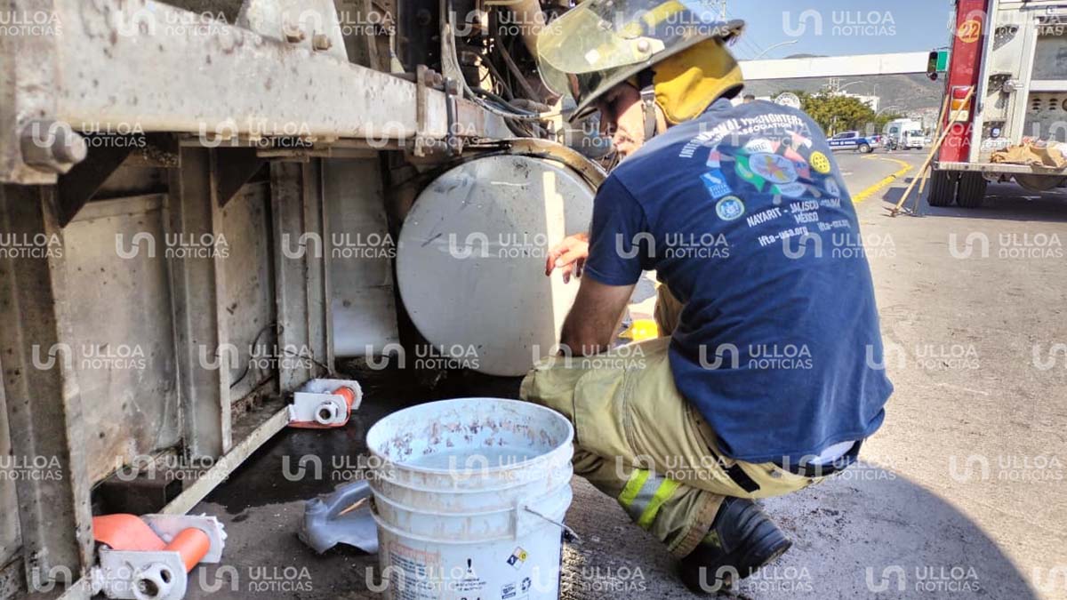Al lugar del incidente arribaron elementos de la Policía Municipal, quienes procedieron a acordonar la zona. Esto fue necesario debido a que, al momento de la volcadura, los tanques de diésel del camión se reventaron, provocando un derrame significativo sobre la carpeta asfáltica.
