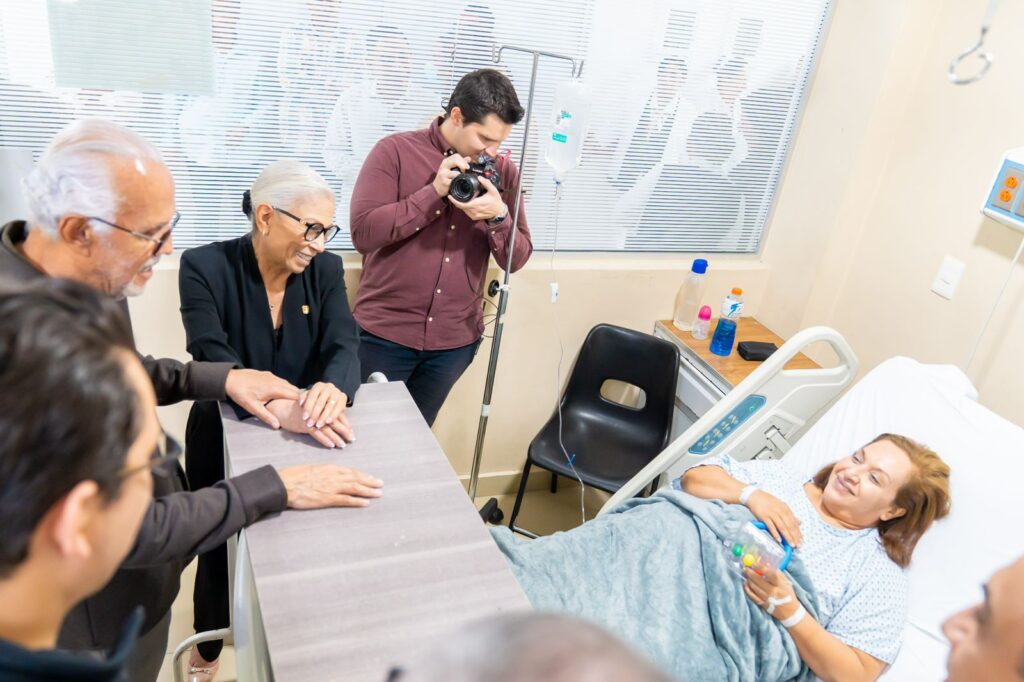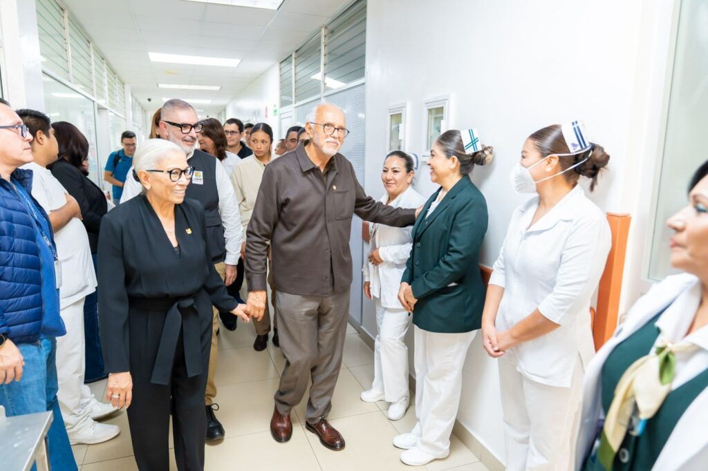 Con empatía y compromiso social, la presidenta del Sistema DIF Nayarit, doctora Beatriz Estrada Martínez, y su esposo, el gobernador del estado, Miguel Ángel Navarro Quintero, visitaron a pacientes beneficiarios de cirugías bariátricas e implantes cocleares y osteointegrados que se encuentran en etapa de recuperación en el Hospital IMSS-Bienestar Tepic, donde se realizaron un total de 24 intervenciones quirúrgicas orientadas a mejorar su calidad de vida y fortalecer su bienestar integral.