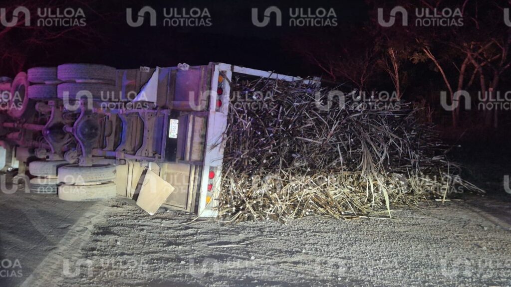 Según testigos, el camión cañero perdió estabilidad al intentar incorporarse a la carpeta asfáltica, aparentemente por el exceso de peso de la carga, y terminó volcando sobre su costado derecho.