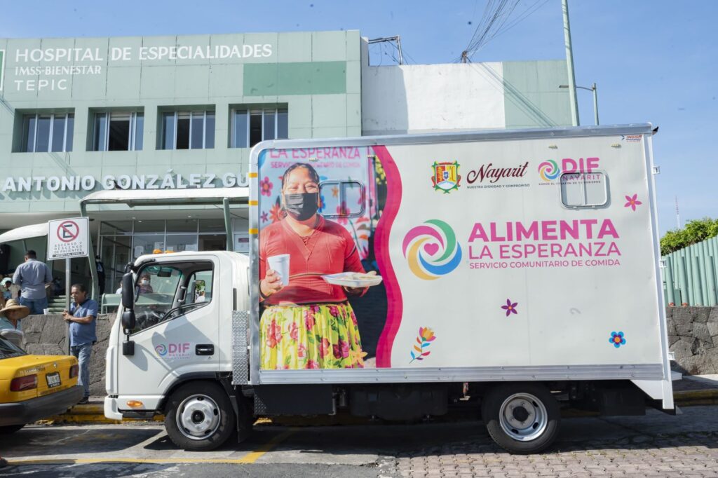 A través del DIF Nayarit, de lunes a viernes se entregan alimentos calientes y nutritivos a familiares de pacientes internados en el Hospital de Especialidades IMSS Bienestar de Tepic, como un apoyo solidario durante su estancia.
