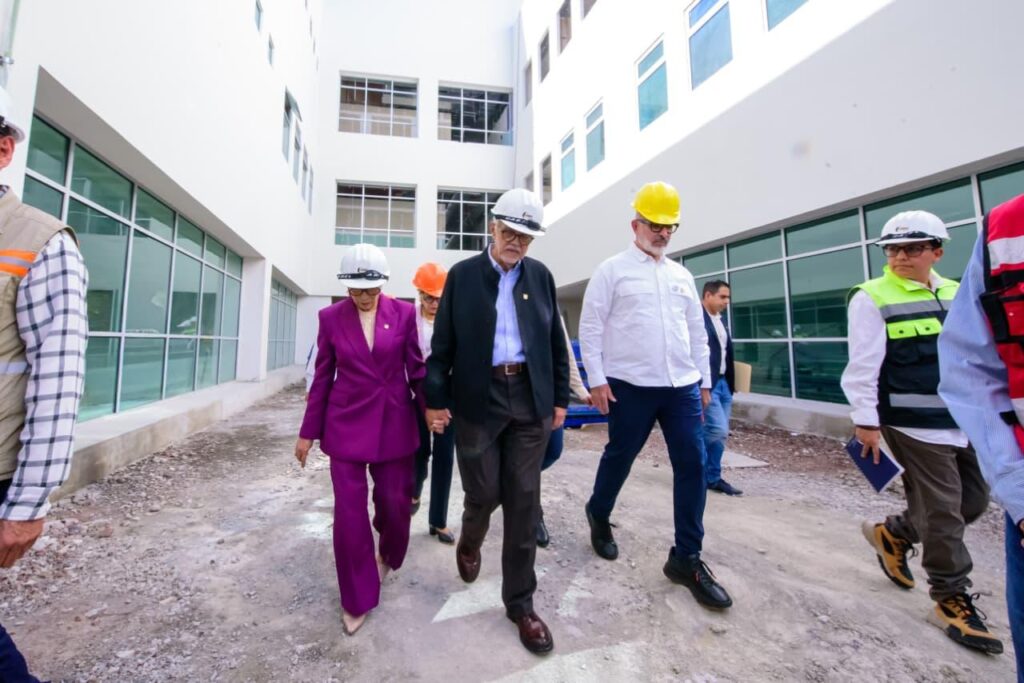 El gobernador del estado, Miguel Ángel Navarro Quintero, junto a su esposa, la doctora Beatriz Estrada Martínez, presidenta del Sistema DIF Nayarit, supervisó el Hospital de Alta Especialidad del IMSS-Bienestar, de 120 camas, ubicado en Tepic. Con un avance físico del 62 por ciento, esta obra contempla áreas de especialidad, quirófanos y espacios para la atención médica.