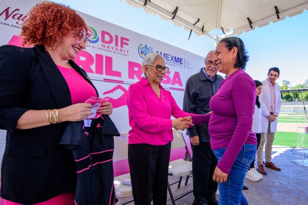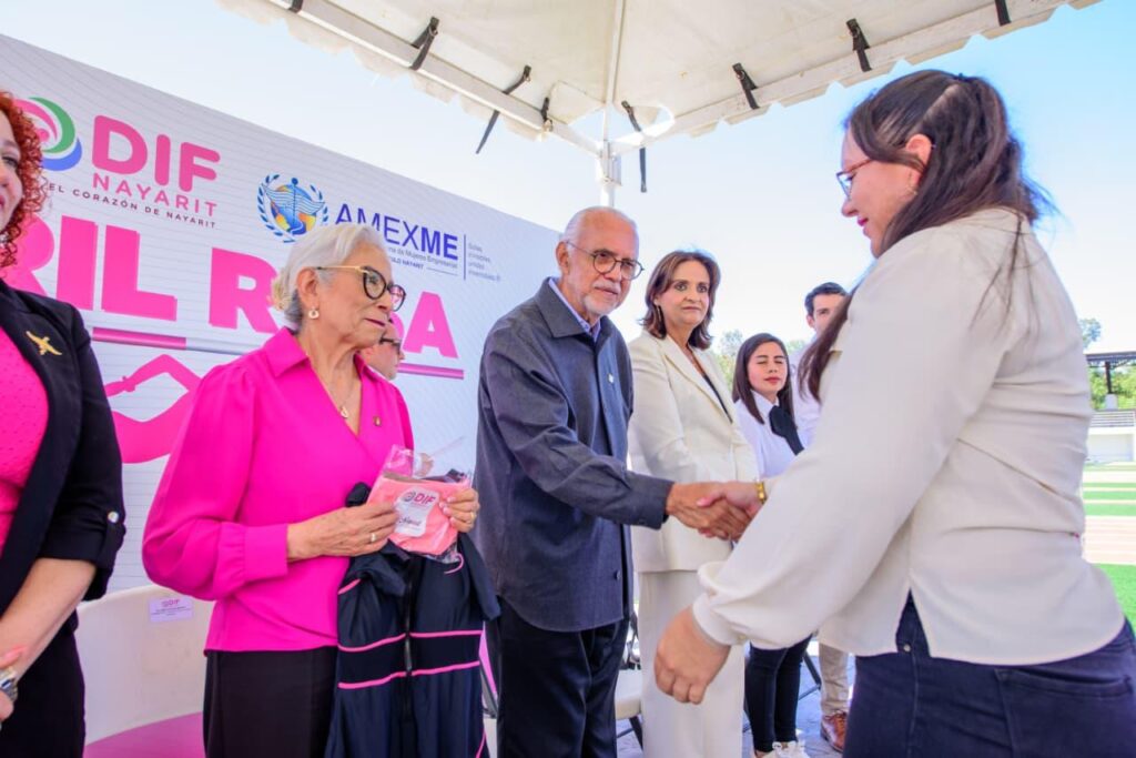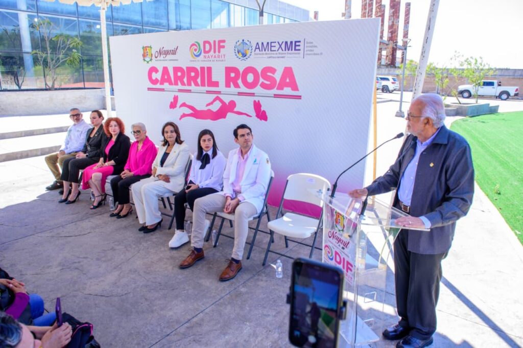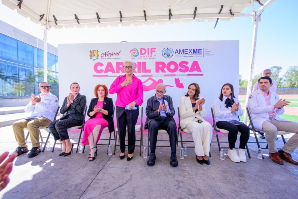 Junto a su esposa, la doctora Beatriz Estrada Martínez, presidenta del Sistema DIF Nayarit, el gobernador del estado, Miguel Ángel Navarro Quintero, dieron inicio al programa “Carril Rosa” en la Unidad Deportiva Nayarit, en Tepic, el cual está pensado para mujeres que han enfrentado el cáncer de mama y hoy viven con linfedema.