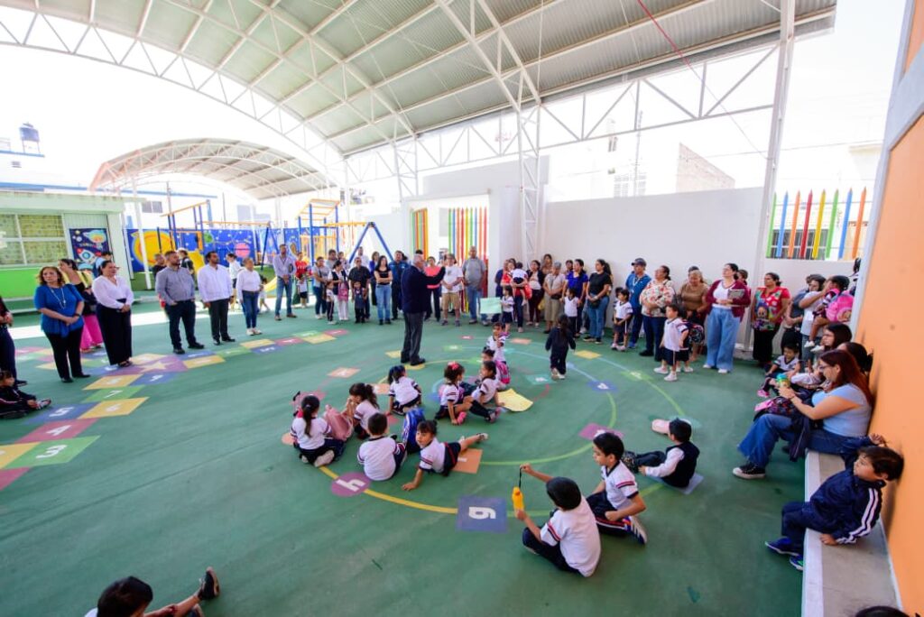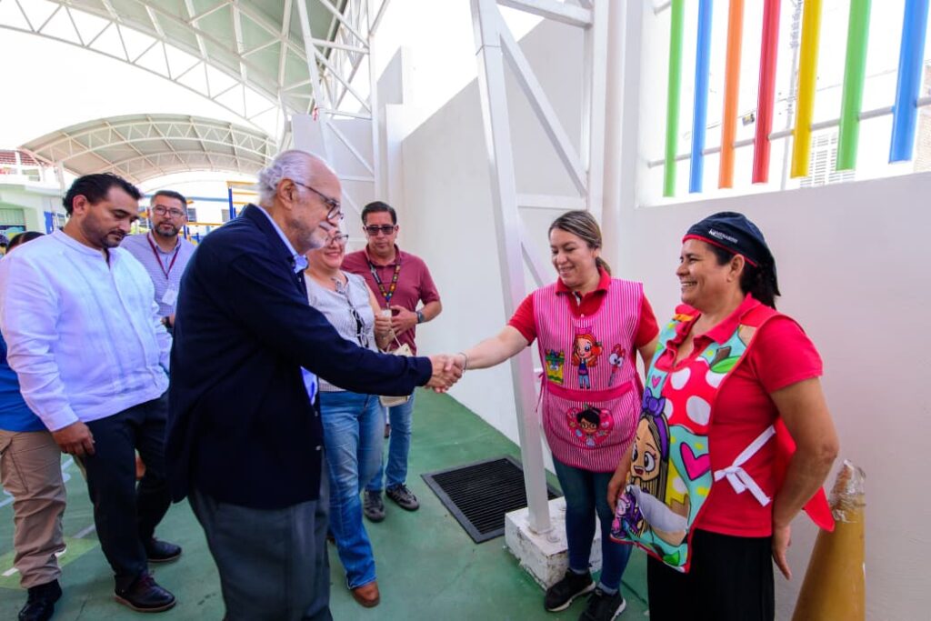 El gobernador del estado, Miguel Ángel Navarro Quintero, visitó el preescolar Promotoras Sociales, en Tepic, donde se llevaron a cabo obras de mejora que incluyeron la construcción de un muro perimetral, la instalación de piso y la edificación de un domo en la plaza cívica del plantel, lo que permitirá que las niñas y los niños realicen sus actividades protegidos del sol y la lluvia.