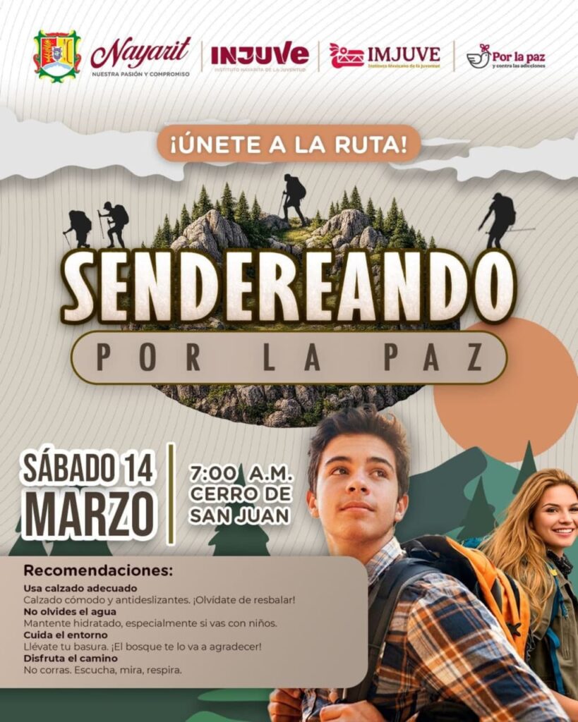 Prepárate para vivir una experiencia diferente en el Cerro San Juan El Gobierno del Estado de Nayarit, a través del Instituto Nayarita de la Juventud (INJUVE), te invita a ser parte de “Sendereando por la Paz”, una ruta que se recorre por una cultura de paz, para conectar con la naturaleza y fomentar la sana convivencia. 🌲